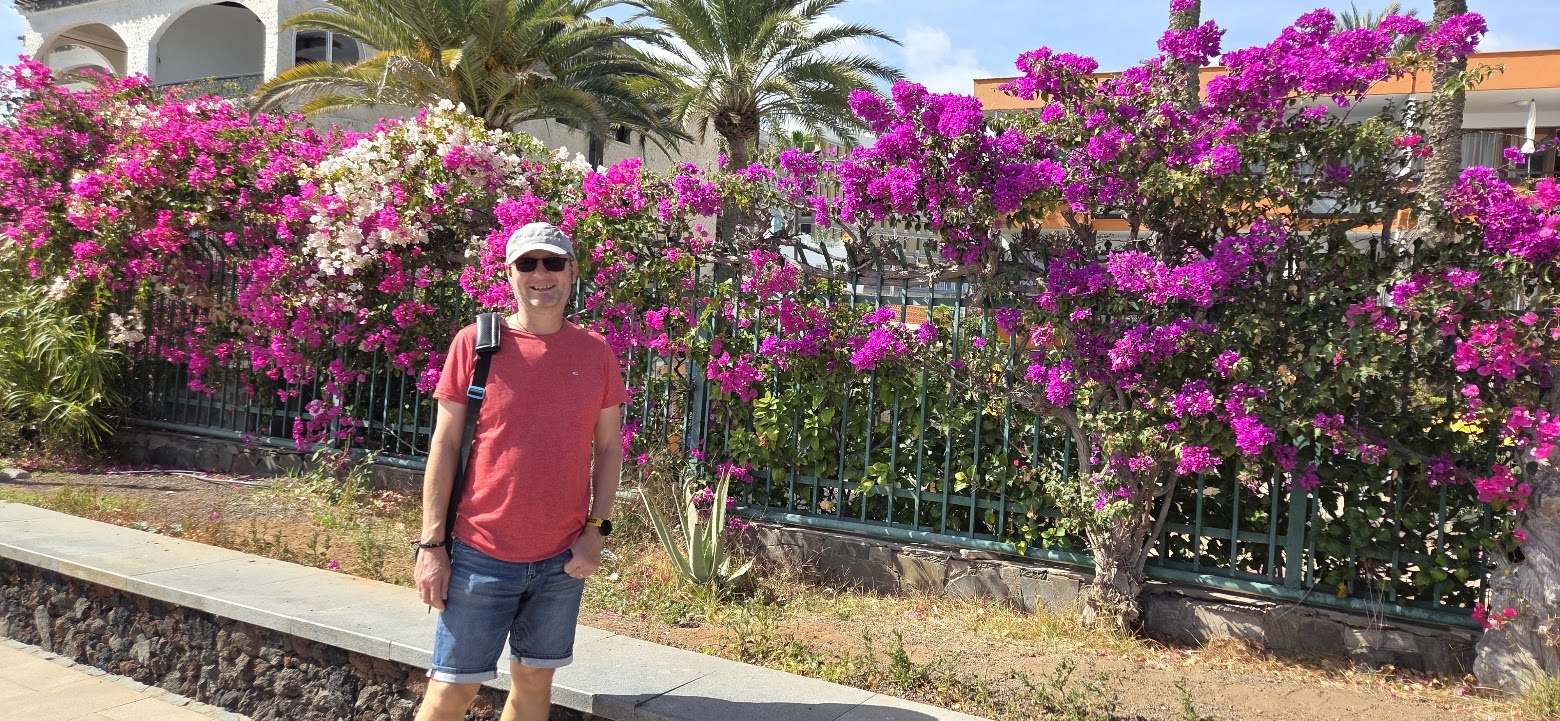 Playa del Inglés; Attila és a bougainvillea-k (ugyanott, 35 évvel később)
