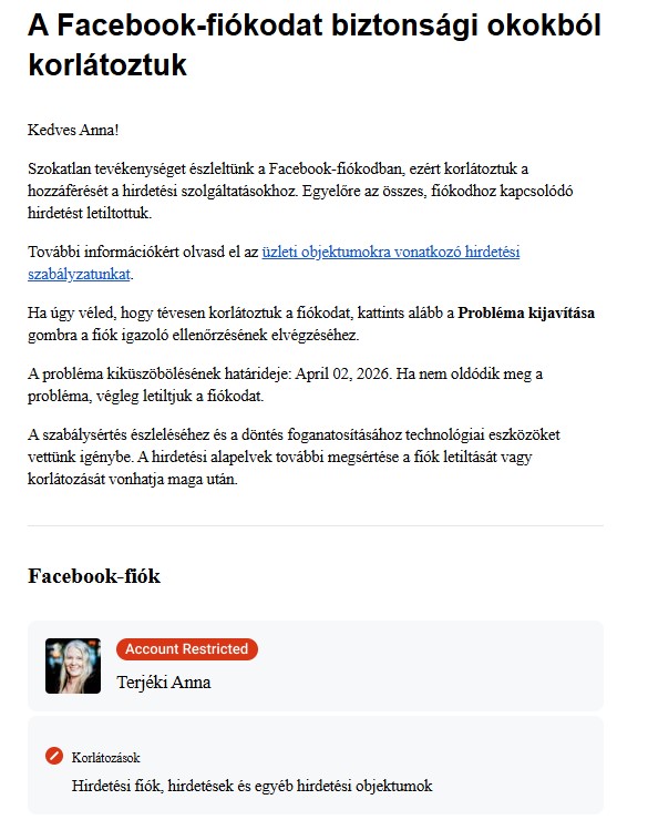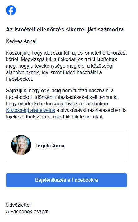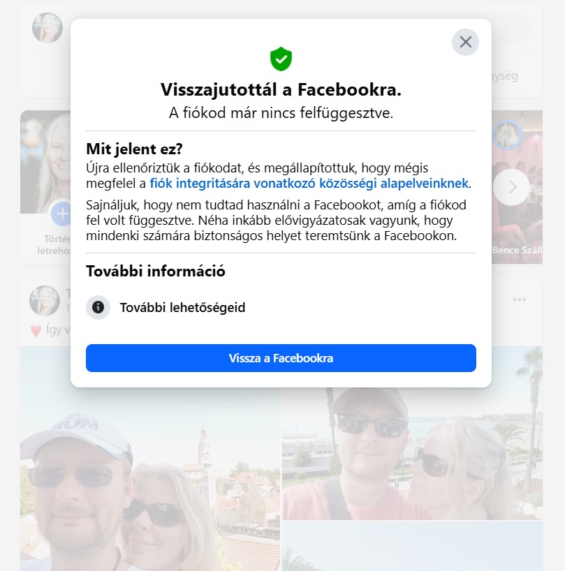 Míg ezeken gondolkodtam, kb. egy órán belül vissza is kaptam a Facebook-fiókomat.