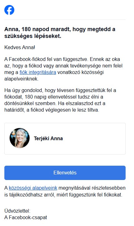 Mit tehetsz, ha a Facebook - szabályai megsértésének gyanújával - "felfüggeszt"?